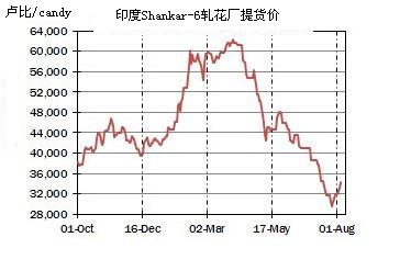 生意社08月08日讯 因国内纺企及出口商需求增加,印度国内询盘价进一步上涨。Shankar-6轧花厂提货价约34250卢比/candy,中间价折价98.10美分/磅,较前日高出2.6美分,较7月26...