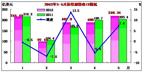 1-4月我国累计出口丝绸服装6316.22万件(套),同比下跌15.82%,出口额为3.48亿美元,同比下降9.54%。出口额排名前五位的市场依次为美国、香港、日本、意大利和法国,同比均有下降,降幅分...