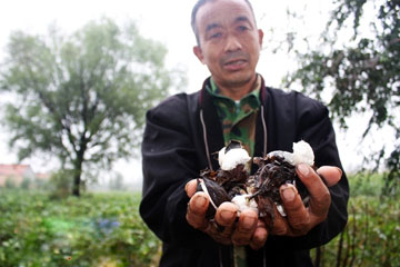 江苏再受雨水侵袭 棉花减产程度加重