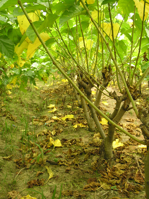 生意社08月05日讯 持续的高温干旱,导致嘉兴市桑园的正常生长受到较大影响,桑树落叶比较严重。图为秀洲区王店镇养蚕大户徐传金的桑园落叶黄叶情况。虽然今年春茧价格很高,但由于夏茧的茧价低于蚕农的期望值...