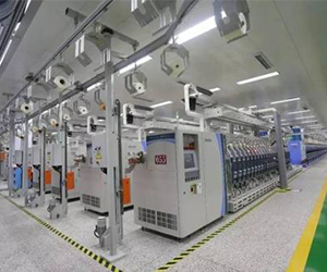 宽敞的厂房里,一排排大型纺纱机飞速运转,在机器隆隆的轰鸣声中,工人们在紧张地忙碌着。