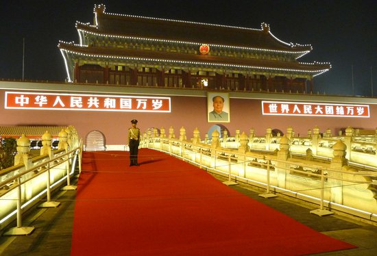 天安门金水桥铺设红地毯迎国庆 (组图)