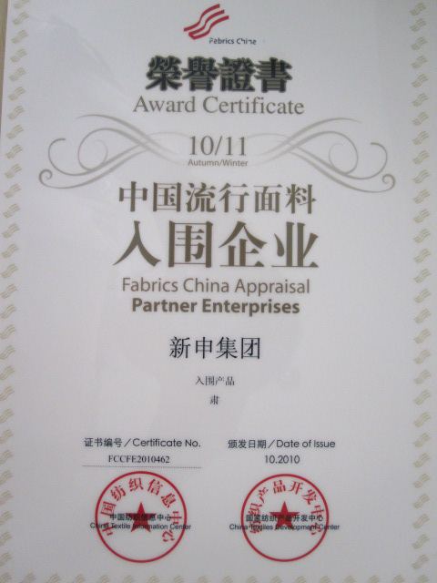 第23届(2011春夏)中国流行面料入围