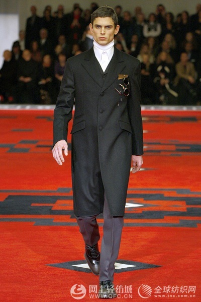 08年PRADA春夏男装Miuccia Prada在颜色上一律沉着厚重,苔藓绿、灰色、暗红色、蓝色,深浅各异,在这样颜色的围裹之下,一种忧郁的男孩子气同男人之间可以互换的气质状态得到绝好的展现...