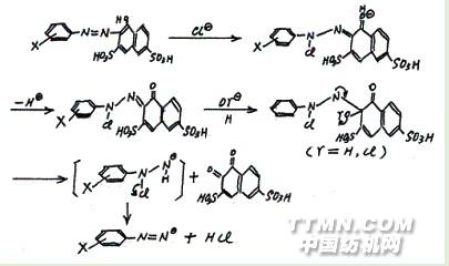 而活性染料中的母体染料很大部份为偶氮结构,因此活性染料很易产生遇氯变褪色问题。