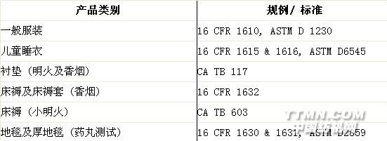 CFR1610 CRR 1610 CFR1615 CFR 1615 CFR1616 CFR 1616美国联邦政府(透过美国消费产品安全议会[CPSC])及加州州政府对现时衬垫家具、床褥及床具订立新的要求。此外,对于联邦一般服装标准亦提议作出修订。