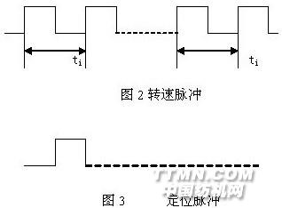 1.1 传感器 主轴传感器采用光电编码器,它的转子和织机主轴同轴固定,主轴回转时带动转子同速回转。传感器每隔α=0.5度产生一个脉冲,织机主轴每转一周,就会产生720个脉冲。图2中ti为第i个脉冲的周期。零位触发(前止心)采用霍尔传感器,织机每转在固定转角位置产生一个定位脉冲,本系统采用它标志测试过程的起点,其波形如图3所示。张力传感器采用全桥应变式,其输出电压的高低正比于纱线张力大小,经标定后,测出电压即可换算出纱线张力。