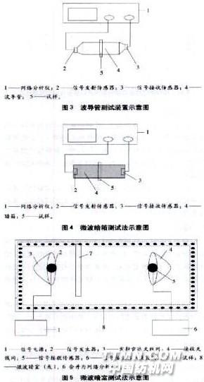 (图1)、屏蔽室法(图2)、波导管测试法(图3)、微波暗箱测试法(图4)、微波暗室测试法(图5)等。