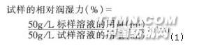 测定润湿力的方法通常有帆布沉降法[GB ll983—1989浸没法,GB 5558—1985丝光浴法,GB 5557—1985鱼钩法、纱带沉降法、沙带沉降法和接触法等。这里介绍浸没法、丝光浴法和接触角法。【方法一】浸没法本方法参照标准GB ll983—1989。在许多纺织应用中,诸如处理或洗涤纺织品以及冲洗或净洗这些硬表面,所有过程都是以液相(水或有机溶剂)取代空气、油或污垢相。因此,了解所用润湿剂的润湿力以及达到完全润湿所需的时间都是有用而且重要的。润湿力(浸没法):棉布浸没于表面活性剂溶液时,溶液取代棉布中包藏的空气的能力。测定原棉布圆片浸没于被测表面活性剂溶液,或已知浓度的标准润湿剂溶液中的润湿时间,对相应的浓度绘制润湿时间.浓度曲线可评价表面活性剂的润湿力。本标准规定了一种用原棉布圆片浸没法测定表面活性剂溶液润湿力的方法。本标准适用于在中性、弱酸性或弱碱性浴中用作纺织润湿剂的所有表面活性剂(不管其离子特性如何).不适用于丝光助剂(强碱性浴)或碳化助剂(强酸性浴)。(一)方法概述将已知特性的棉布圆片夹在浸没夹内,浸没于已知浓度的表面活性剂溶液中。由于棉布中包藏空气。棉布圆片趋向于浮到液面,可借助特制的浸没夹,使棉布圆片保持完全浸没于溶液中。空气被取代,溶液渗透迸棉布后,棉布圆片开始下沉。测量棉布圆片从浸没到开始下沉的时间间隔来测定润湿时间。分别测定两种标准(或两种已知润湿特性)的表面活性剂和被测表面活性剂5种不同浓度溶液的润湿时间。绘制“润湿时间一浓度”曲线,比较曲线的相对位置,以确定被测表面活性剂的润湿力。(二)试剂和仪器 (1)两种或两种以上已知润湿特性的表面活性剂。(2)对照原棉布。使用GB 2909.1—1982《橡胶工业用棉帆布技术要求》中规定的202号帆布。纱号×