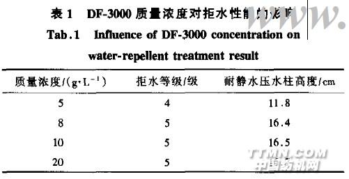 由表1可知,不是拒水整理剂质量浓度越高,拒水性能越好。当拒水整理剂质量浓度大于8 g/L时,提高整理剂质量浓度已不能显著提高非织造布的拒水性能。拒水整理的目的是阻止水对非织造布表面的润湿,即利用非织造布纤维结构中毛细管的附加压力,阻止液态水通过;但仍要保持非织造布的透气透湿性能,为此就必须在其表面涂一层低表面能的材料 。当拒水整理剂浓度达到某一特定值时,非织造布表面已经形成一层低表面能表面,表面能低于水的表面能,有效阻止了水对非织造布的润湿,因而拒水效果不会随着拒水整理剂质量浓度的增大进一步提高。2.2 焙烘温度对拒水性能的影响用DF.3000配制8 g/L的拒水整理剂处理非织造布,在130—135 qc预烘3 mirt,再分别在160—165'12、170—175 oC、180—185'12焙烘1 min,测试其拒水性能,结果见表2。