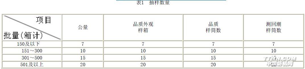 4.3 筒子外观质量抽样检查方案见表2。表2