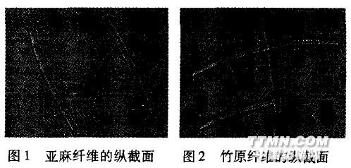 由表1可见,竹原纤维和亚麻纤维的溶解性能相差不大,没有一种试剂能把竹原纤维溶解掉而对麻纤维损伤不大,或者将麻纤维溶解掉而 对竹原纤维损伤不大,因此用常规溶解方法难以满足定性分析要求。