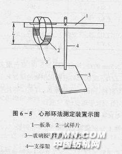 试样的有效长度为20.0Cm,形成的心形环平面垂直于悬吊织物的平板条。1min后测量水平平板条顶部至心形环最低处的距离L(mm)。试样的经、纬向及其正、反面各测5次,用经、纬向平均值表示。测量值L大,表示织物柔软性较好;反之,则相对较差。另外测量值L也可表示织物定向(经、纬向)抗弯曲硬挺度的倒数值。 (3)说明:柔软度也可用测试硬挺度的方法进行测试。只是抗弯曲硬挺度与柔软度是倒数关系,即抗弯长度越短,表示柔软性越好;反之,则相对较差。