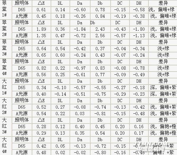 5、综合评述: 在翠兰上:上海大祥300DX的皂洗牢度最好,但色光变化太大,实验室打板无法矫正色光的变化;无 甲 醛 固 色剂300DX(本网)牢度略微差一点点,但色光变化属于可调范围之内,大祥的40