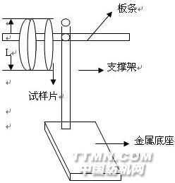 ③折磨:分别取7.6cm×2.5cm的经纬向试样各5块,在折磨夹具上装上试样,压块质量为0.227kg或0.454kg(根据织物的平方米质量选择)。用400#水砂纸作为磨料,向同一方向摩擦,直至试样片磨断。记录摩擦的次数,经、纬向分别取平均值(取整数)。 5.柔软度的测定—心形环法 ⑴试样准备:从待试织物上分别裁取2.5cm×25cm的经、纬向试样各10条。 ⑵测试步骤:将试样两端用胶带(1.25cm×7.6cm)平整地粘贴在板条(318mm×19mm×3mm)上,其安装如图所示。试样的有效长度为