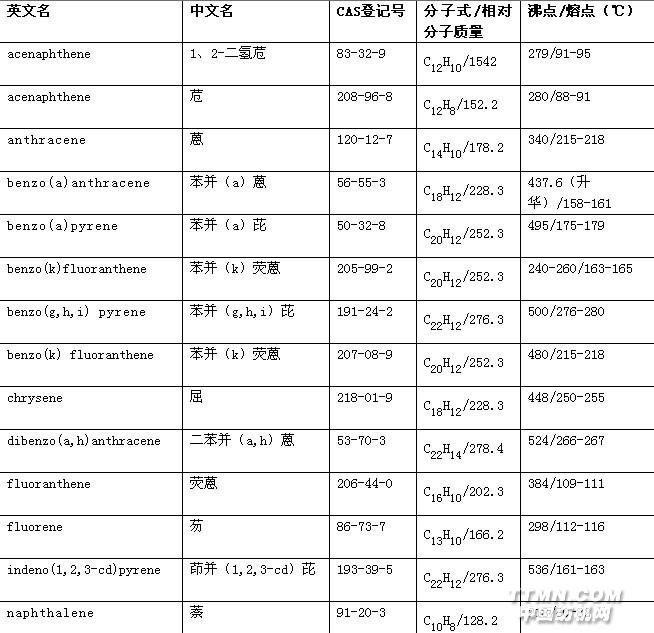 多环芳烃化合作(PAH)是部分有机物质高温分解后释放出来的一类化合物。多环芳烃存在于煤、煤焦油、原油、木馏油等自然物质中,一些人为因素也会使环境中产生多环芳烃化合物,如汽车排放的尾气、香烟的烟雾、炭烧烤的肉类和使用过的电动机润滑油中。多环芳烃化合物是两个以上苯环并接在一起的化合物,大多是高沸点、高熔点、低蒸汽压,能溶于有机溶剂中的化合物,基本上是一类化学惰性物质。通常为碳氢化合物不完全燃烧而形成,如煤干馏和石油裂解过程中产生。一些多环芳烃化合物用于药品、染料、有机颜料、萤光增白剂、杀虫剂、塑料、橡胶和涂料等。美国环境保护署(Environmental Protection Agency, EPA)在国优先目录(National Priorities List)的1430个化合物中已经发现至少600个为多环芳烃类化合物。其中16种化合物已于1979年由EPA判入管制范围。OEKO-TEX Standard 100的 2010年修订版在附录5中所列16种PAH完全与之相同。欧盟化学管理局(ECHA)于2009年9月1日公布的第二批15种高度关注物质(SVHC)清单中,有6种为蒽油和煤焦油[4],以及ECHA于2008年10月28日公布的第一批SVHC中蒽也在其中。这些都是多环芳烃化合物[5。因此可见,OEKO-TEX Standard 100的 2010年修订版所增加的监控有害物质,都是随欧美有