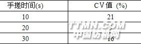 由表2中结果可知,在20s时测得数据CⅤ 值最小,即测试结果最稳定。C)测试操作人员的影响