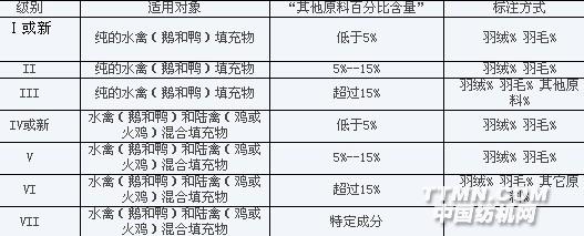欧洲标准还规定,在标有“陆禽”的标签上,可直接标明陆禽的种类(鸡或火鸡)。另外,欧洲标准还要求羽绒羽毛标签应当标明填充物的重量。