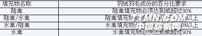 国内 目前,我国羽绒服装尚无专用标签。羽绒羽毛填充物的分类和标名不如欧洲、美国和日本技术要求细致、规范和准确。尽管GB/T14272-2002 羽绒服装国家标准明确规定,在产品品质表示方面执行GB5296.4 消费品使用说明(纺织品和服装使用说明)国家强制性标准,产品必须标明名称、号型规格、绒子种类、含绒量及充绒量等内容,但总体上看,“羽绒”的概念在国内使用的太宽泛,就连羽绒羽毛产品国家新标准也只将产品分为羽绒、羽毛两大类,并规定“绒子含量&r
