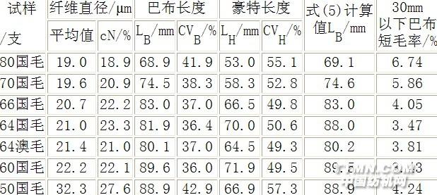 羊毛纤维具有优良弹性和吸湿性,光泽柔和,不易沾污。用羊毛制成的春秋织物,手感滑糯,丰厚有身骨,弹性好,呢面洁净;制成的冬季织物,质地丰厚,手感丰满,保暖性强;高品质细支羊毛制成的夏令衬衫具有挺括、凉爽、轻薄、弹性好等特点;用羊毛制成的装饰用纺织品,华丽名贵;羊毛还可制成多种工业用呢、毡等。毛纤维的品质影响着羊毛纺织品性能,为了合理用毛,毛纤维性能测试研究是必不可少的。本文研究了国产细毛、半细毛性能和不同长度测试方法所得指标间关系,供毛纺加工和性能测试时参考。