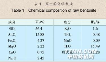 将钙基膨润土调制成质量比为20%的浆料,加入0.18 g/L 的钠盐溶液,于75℃水浴加热1.5 h,并不断搅拌,静置0.5 h, 烘干,研细,过0.14 mm试验筛,得钠基膨润土。