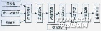 水煤浆的主要产地为八一矿、胜利矿、大同矿和抚顺矿。近几年广东、江苏、浙江等地区也出现了一些水煤浆厂和配送中心。水煤浆典型的制备工艺流程如图1。