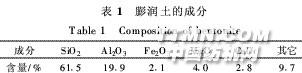 1 实验部分 1·1 仪器 THZ-92A型台式恒温振荡器;DSHK-4型磁 力搅拌器;7230G型分光光度计;pHS-25型酸度计 等。 1·2 原材料及其组成 实验用膨润土取自辽宁,含石英、长石、珍珠岩 等杂质,膨润土中蒙脱石含量为80%左右,其化学 成分见表1。印染废水取自抚顺本地一印染厂。