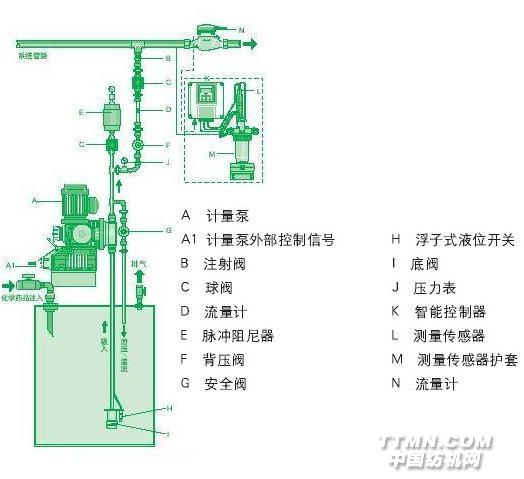 系统组成全部附件配置的一体化加药控制系统可按下图所示但在实际的过程中根据工艺状况的不同完全可对附件进行取舍。