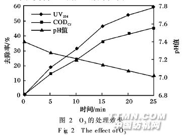 2 结果与讨论2.1 单独臭氧工艺的处理效果 单独臭氧工艺的处理效果见图2。