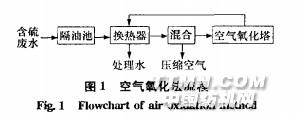 目前,从经济等方面考虑,国内多采用催化剂氧化法,即在催化剂作用下,利用空气中的氧将硫化物氧化成硫代硫酸盐或硫酸盐。采用的催化剂有醌类化合物、锰、铜、铁、钴等金属盐类,以及活性炭等。处理工艺如图l所示。一般认为,该处理方法反应时间长,能耗较大。