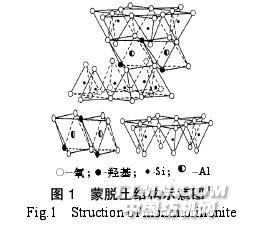 蒙脱土(MMT)是一种层状结构的硅酸盐,在工业中应用 极广。蒙脱土由于其独特的结构优势,来源易,价格低而受到 大家的青睐和重视,蒙脱土属于2?1型结构的具有膨胀性的含 水铝硅酸盐,其结构单元是由硅氧四面体层中夹杂一个铝氧八 面体层构成的,如图1[1]。