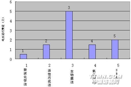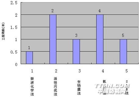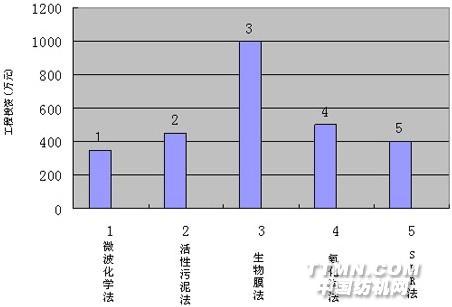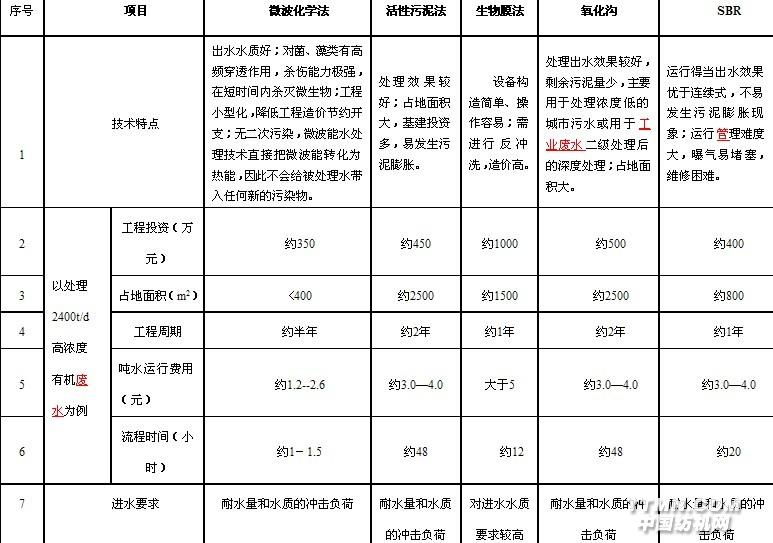 微波化学法与传统污水处理工艺优劣对比表---工业污水1、工程投资对比图2、占地面积对比图3、工程周期对比图4、吨水运行费用对比图5、流程时间对比图6、核定人员对比图(以处理2400t/d高浓度有机废水为例)