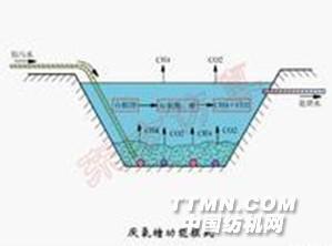 厌氧塘的工作原理 厌氧塘的原理与其他厌氧生物处理过程一样,依靠厌氧菌的代谢功能,使有机底物得到降解。反应分为两个阶段:首先由产酸菌将复杂的大分子有机物进行水解,转化成简单的有机物(有机酸、醇、醛等);然后产甲烷菌将这些有机物作为营养物质,进行厌氧发酵反应,产生甲烷和二氧化碳等。如图: