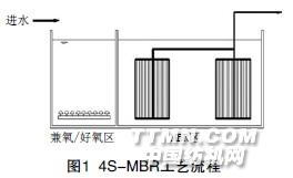 1 膜生物反应技术(4S-MBR)简介4S-MBR是金达莱公司自主研发的一种以膜生物反应器为基础,反应器内活性污泥浓度大,运行能耗低,可实现基本不排放有机剩余污泥的污水处理新工艺,其特点“4S”主要体现在污水污泥同步(Sewage and Sludge Treating Synchronization)、处理回用同步(Treating and Recycling Synchronization)、脱氮除磷同步(Denitrifying and Dephosphorizing Synchronization)、节能高效同步(Saving and Efficiency Synchronization)方面。1.1 4S-MBR工艺流程(见图1)污水经提升泵提升后进入兼氧/好氧区(主要目的是控制前端硝化反应,优化后段氨氮及硝酸盐比例),随后污水进入膜生物反应区,由于膜的截留作用,反应区内形成高浓度的活性污泥,主要污染物(有机负荷及氨氮)在此区得到强化降解,出水可达到城市生活回用水标准要求。