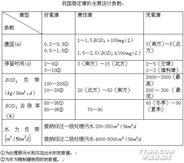 (2)塘型及其组合 塘型的选择应从处理对象的水质特征出发,结合当地气候、地形条件确定。例如,在光照充足没有持续冰封期的地区,可选用好氧塘;而在处理高浓度有机废水时,应在系统中设置厌氧塘;在处理城市污水和工业废水时,应根据原水性质及处理水的用途和要求,宜采用多塘组合系统。