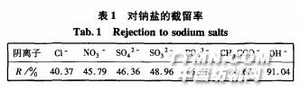 2结果与讨论2.1对阴离子的选择性2.1.1阳离子为Na时的截留情况表1为纳滤膜对不同阴离子的钠盐的截留情况。.jpg)