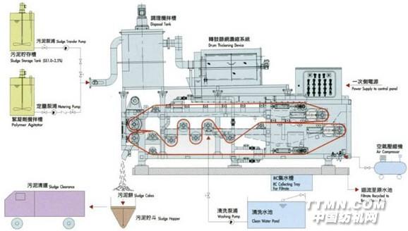 带式压滤机广泛用于城市污水处理、化工、炼油、冶金、造纸、制革、食品、洗煤、印染等行业的污泥脱水,该机连续作业,自动化程度高、节能、高效、使用维护方便,是污泥脱水的理想设备。污泥脱水机周边附属设备参考配置图.jpg)