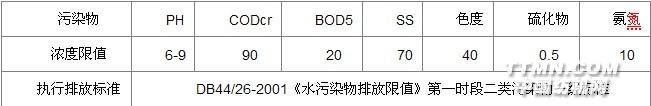 工程名称:废水处理工程建设单位:花都联发印染厂工程技术:印染废水处理技术 工程文字说明 广州市花都区福益染织有限公司位于花都区新华镇上凌村上凌经济合作社所在地,该建设项目占地面积 13500㎡,建筑面积7000㎡,总投资1200万元,其中环保投资180万元,主要以加工漂洗、整理针棉及化纤织品为主要业务,年加工约3000吨,在染色过程中所用的染料有活性、直接、分散和硫化染料以及部分助剂,这些染料和助剂在染色过程中除部分被织物吸收外,其余随废水排出,废水量大,COD值较高,该公司决定建一套3000T/D处理规模的染整废水处理设施,工程于2003年10月开工建设,于2004年3月全面竣工投入运行,2003年7月通过花都区环保局监测验收,处理后出水水质达到广东省地方标准DB44/26-2001《水污染物排放限值》第一时段二类污染物一级标准 。 该工程投入运行以来,改善了东江河的水质,创造了良好的社会效益和环保效益。 工程规模 : 3000T/D 设计处理量 :125m 3 /h 设计进水水质: