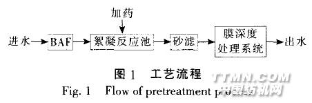 1.2 工艺流程及设备中试系统主要包括BAF、微絮凝、深度处理系统3部分.工艺流程如图l所示。