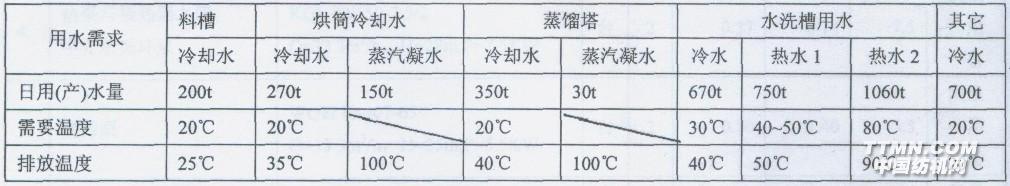 2.2平衡分析用水、用能情况对以上资源、能源需求(产出)标准以及其他能源数据进行综合平衡分析,得出如图1资源、能源循环利用,供求变化关系。通过资源、能源利用流程图可以看出,对企业进行技术改造,能够实现内部多种资源、能源相互利用,循环回收,从供应系统上整体提高资源、能源的