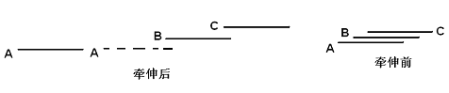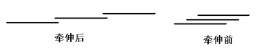 由此可知:须条牵伸后与牵伸前相比,纤维头端拉长了E倍,因此按照此规律牵伸,牵伸前后的均匀度没有变化。如图所示为纤维牵伸前后的排列状态: