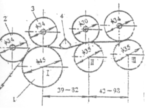 1-前罗拉2-导向辊3-前胶辊4-压力棒