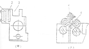 棒的位置越高,须条的受压减弱,反之则增加对须条的压力,如图(乙)所示。另外,有些并条机上还使用间歇回转上压式圆形压力棒以及固定下托式弧形或扇形压力棒等多种形式,在工艺上各具有自己的特点。