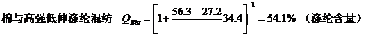 现将棉与粘纤和棉与高强低伸涤纶混纺时的临界混纺比举例计算如下。