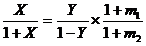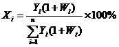 设有n种纤维混纺,第i种纤维的实际回潮率为Wi,干重混纺比为Yi,则两种纤维的湿重混纺比Xi可用下式计算: