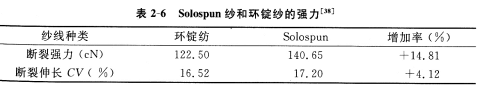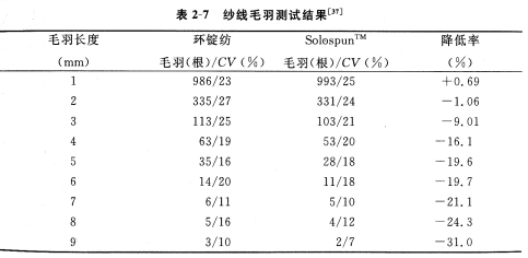 <从细纱、粗纱到络筒,Solospun可省略加捻及相关工序,由于纱线截面内的纤维根数较多而使加工性能得到改善且可纺线密度范围大。例如,SolospunTM可以用21.5μ1m的羊毛取代传统双股纱加工所使用的19.5μm的羊毛。尽管,SolospunTM的纺纱效率稍有下降,但总成本却节省了35%以上。