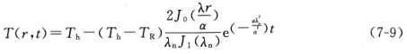 式中:α为热扩散系数;J0,J1为贝塞尔函数。