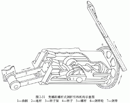 如图2-31所示为变螺距螺杆剑杆引纬机构示意图
