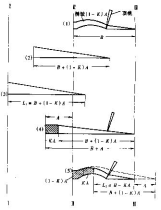 (1)分离结束时,钳板钳口外的须丛垂直投影长度为B,而顶梳后面涌皱在须丛内的长度为:A-X=(1-K)A 。