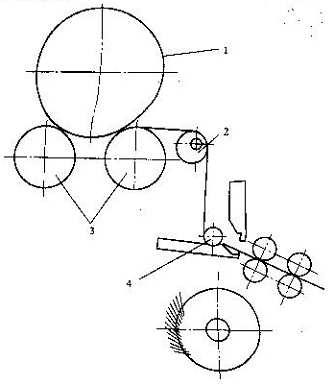 承卷罗拉有两种回转方式:一是间歇回转式,如A201系列精梳机;采用此种方式喂棉,高速时承卷罗拉的冲击大,且给棉量难以控制。二是连续回转式,如SXF1269A型精梳机;此种方式适应精梳机的高速运转。
